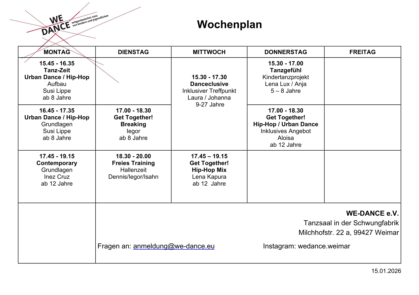 Anmeldung und weitere Informationen unter: anmeldung@we-dance.eu